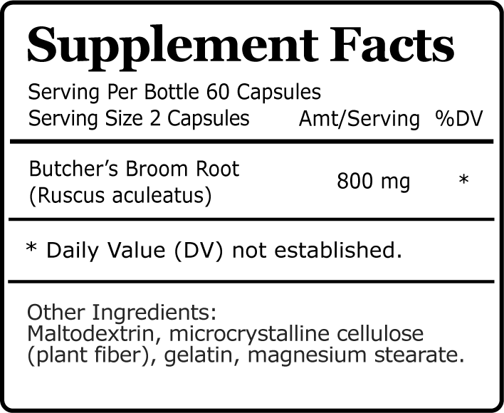 Butcher's Broom has been used in traditional herbal medicine for its benefits, particularly for improving blood circulation, reducing inflammation, and supporting vein health. It has been used to address a variety of conditions, including venous insufficiency, hemorrhoids, and menstrual discomfort.