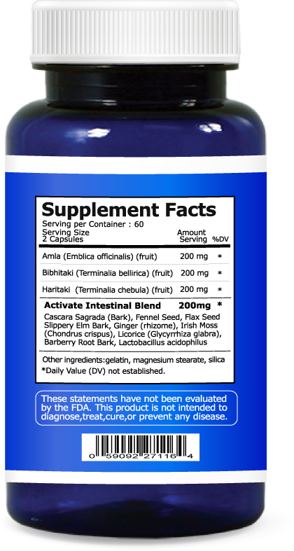 Triphala is known to strengthen intestinal function by resolving chronic constipation and diarrhea, and to help suppress parasites, remove intestinal toxins, and prevent obesity.
