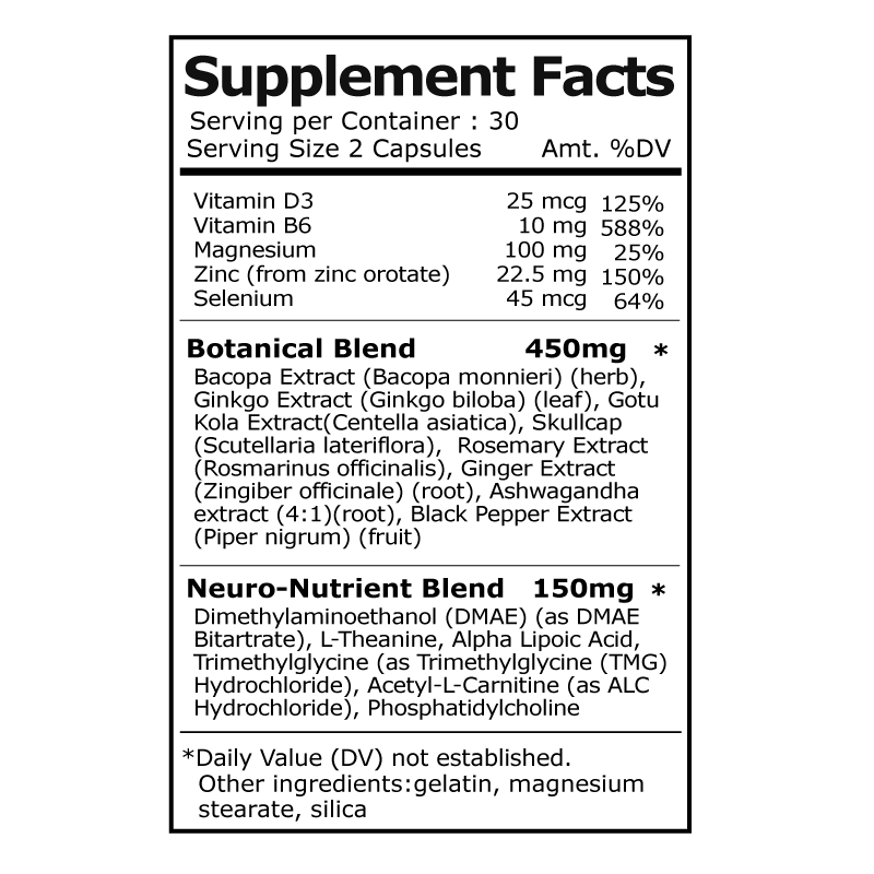 Contains herbal extracts, and products like Memory Armor also contain vitamin D and B vitamins to support mental focus and overall cognitive health.