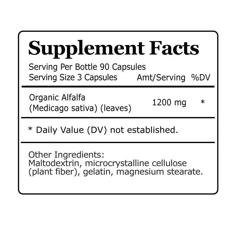 Alfalfa Extract, Vitamins, Minerals, Chlorophyll Antioxidant Green Superfood