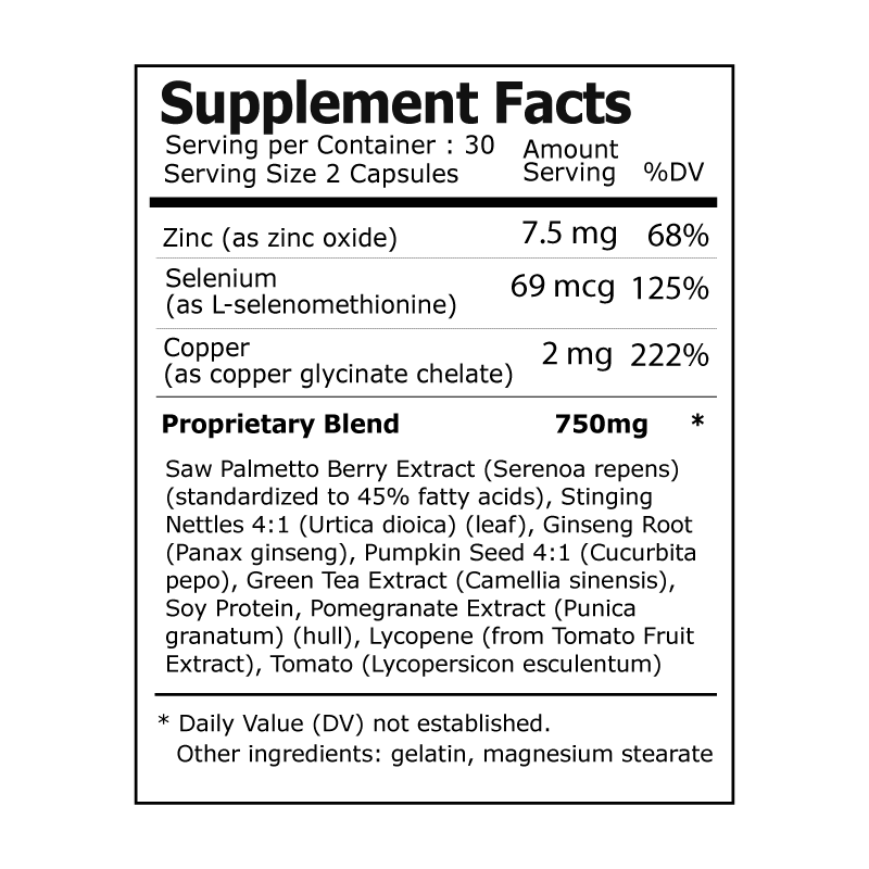 Prostate Formula with Saw Palmetto, Nettle Root, and Zinc Oxide