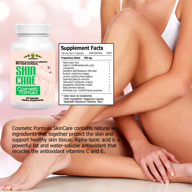 Cosmetic formula for Skin Care is a botanical alternative medicine formulation which attacks external skin disorders from within,