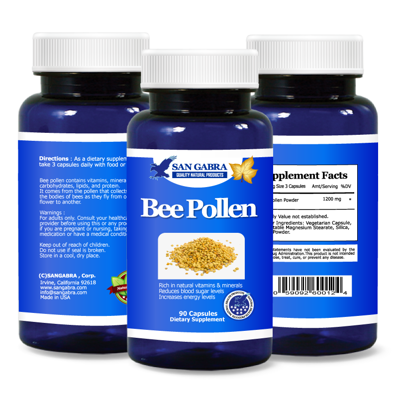 Bee pollen contains vitamins, minerals, carbohydrates, lipids, and protein.
