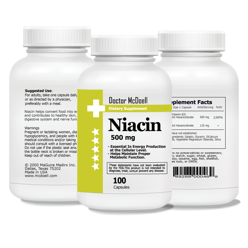 Niacin 500mg, Vitamin B3 Non-GMO, Gluten Free