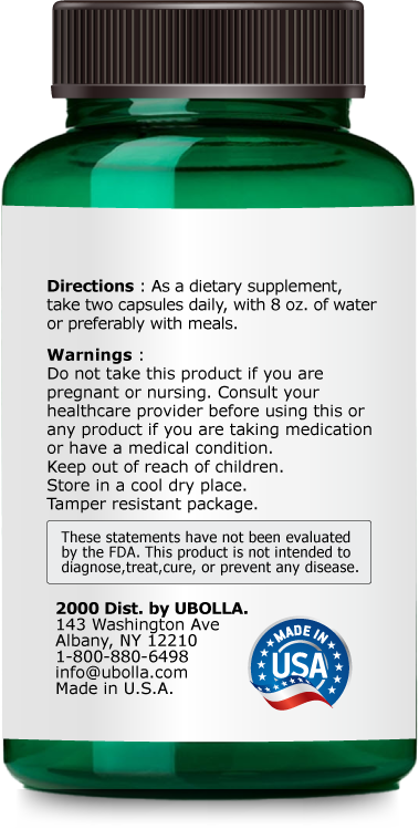 As a dietary supplement, take two capsules daily, with 8 oz. of water or preferably with meals.