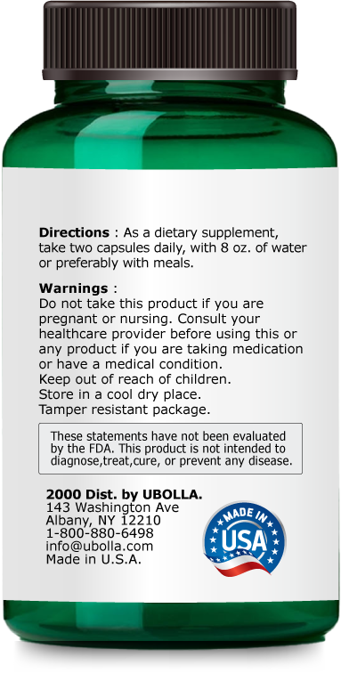 As a dietary supplement, take two capsules daily, with 8 oz. of water or preferably with meals.