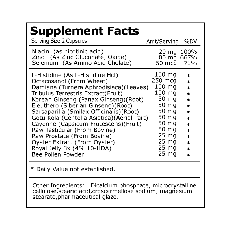 As a dietary supplement, take one to two capsules with water approximately 2 hours before an intimate encounter.