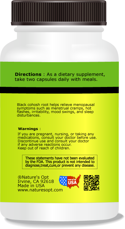 Black cohosh root helps relieve menopausal symptoms such as menstrual cramps, hot flashes, irritability, mood swings, and sleep disturbances.